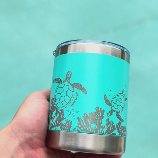 Aqua Coral Reef Turtle Insulated Travel Cup