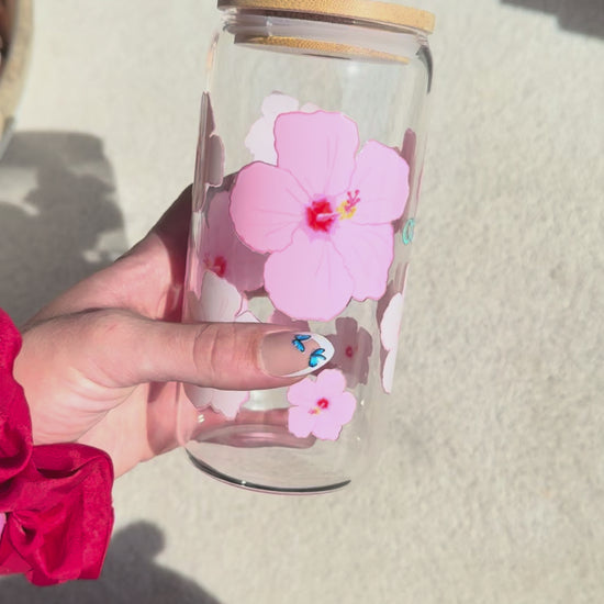 Keep cool and refreshed with our glass tumblers featuring our original designs, each one adorned with a UV DTF sticker applied by hand. The double-sided design creates a vibrant, eye-catching effect that shines from every angle. Completed with a glass straw and bamboo lid, they’re perfect for your on-the-go summer sips.