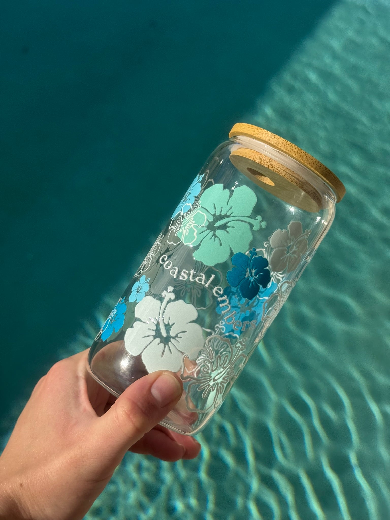Ocean Hibiscus Glass Tumbler