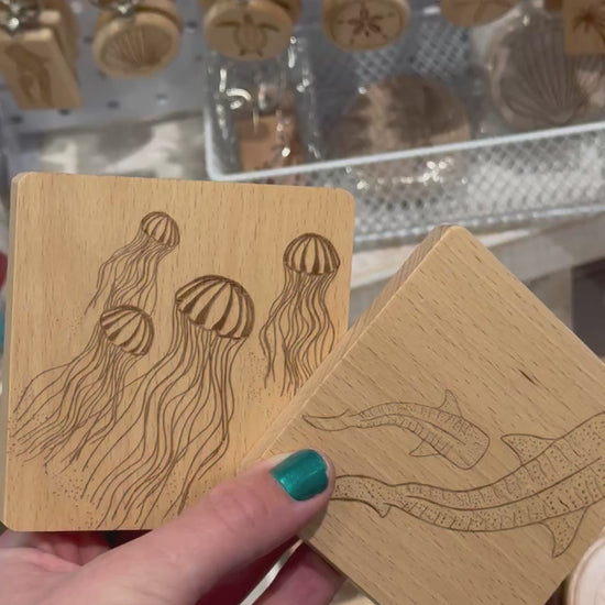 Bring effortless coastal charm to your home. These square beach wood coasters are engraved with our original ocean-inspired designs and crafted to fit most cup, mug, and glass sizes with ease. Each piece is finished with our Coastal Embers logo engraved on the underside.